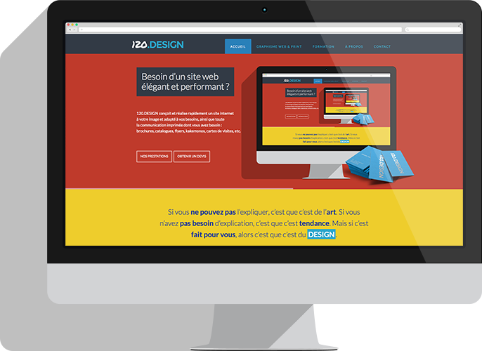 120.DESIGN est une agence composée de talents web et print aux multiples facettes : graphisme, création, exécution, mise en pages, webdesign, illustrations, animations HTML5, photographie, vidéo, développement et intégration web front end et back end, webmarketing, référencement, etc.